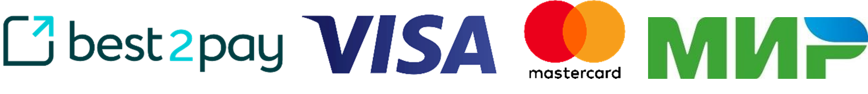 Оплатить заказ можно с помощью банковских карт платёжных систем Visa, MasterCard, МИР. При оплате банковской картой безопасность платежей гарантирует процессинговый центр Best2Pay.